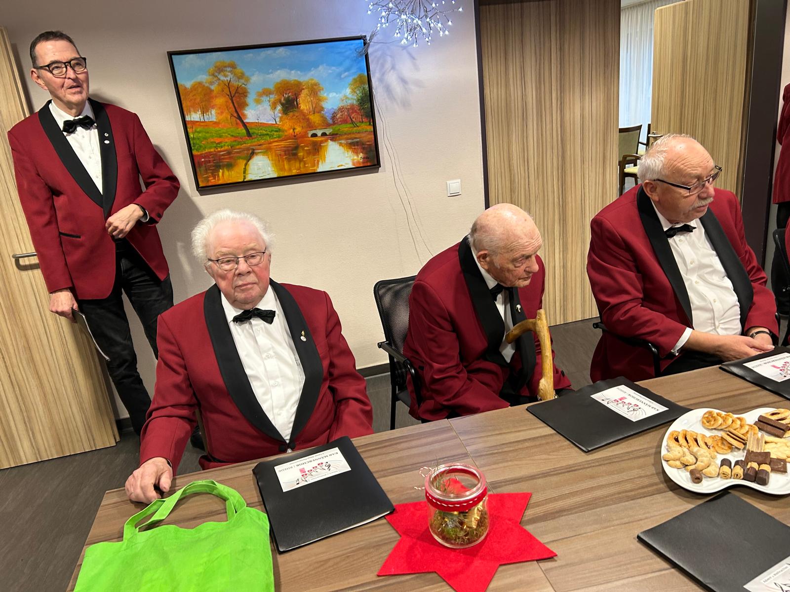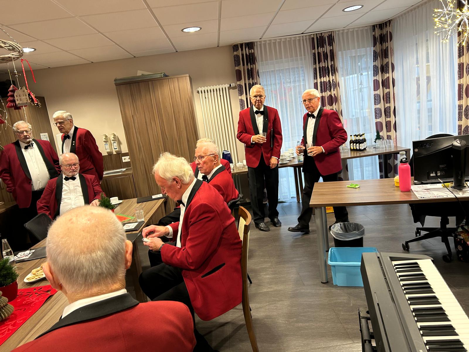 Freitags ging´s zum Seniorenheim Azurit. Der Raum zum Einsingen ist immer schön dekoriert, Kaffee, Plätzchen, Softgetränke stehen bereit. 20 Minuten reichten diesmal für die Vorbereitung. Beim Betreten des „Restaurants“, in dem wir immer singen, wurden wir mit Applaus begrüßt. Monika moderierte wieder freundlich und kompetent, führte kurz in jedes Lied ein. Wir starteten mit echten Adventsliedern, die von Erwartung und Hoffnung erzählen: „Macht hoch die Tür“. „Hoch tut euch auf“, „Haltet in den dunklen Tagen“, „Ist es noch weit nach Bethlehem“, „Maria durch ein´n Dornwald ging“. Eine Viertelstunde war dann Pause für Bewohner und Sänger mit einem Getränk. Danach wurde es weihnachtlicher, viele Lieder konnten die Hausbewohner mitsingen, einige Chorsätze trugen wir bei: „Weihnachtsglocken“, „Ein Stern stand am Himmel“, „O du Fröhliche“, „Stille Nacht“, das „Trommlerlied“. Ein herzliches Dankeschön, viele liebe Weihnachtswünsche, freundliche Grüße zu bekannten Bewohnern, „Ja, natürlich kommen wir nächstes Jahr wieder“. Im Pausenraum noch kurze Verabredungen für den Auftritt nächste Woche.