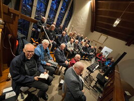Beim Einsingen hatte wir schon den drei Geburtstagskindern der letzten Woche, Johannes, Bernd und Ludger ein Ständchen gebracht, nach der Messe sangen wir ihr gemeinsames Wunschlied „Frieden, Frieden“.