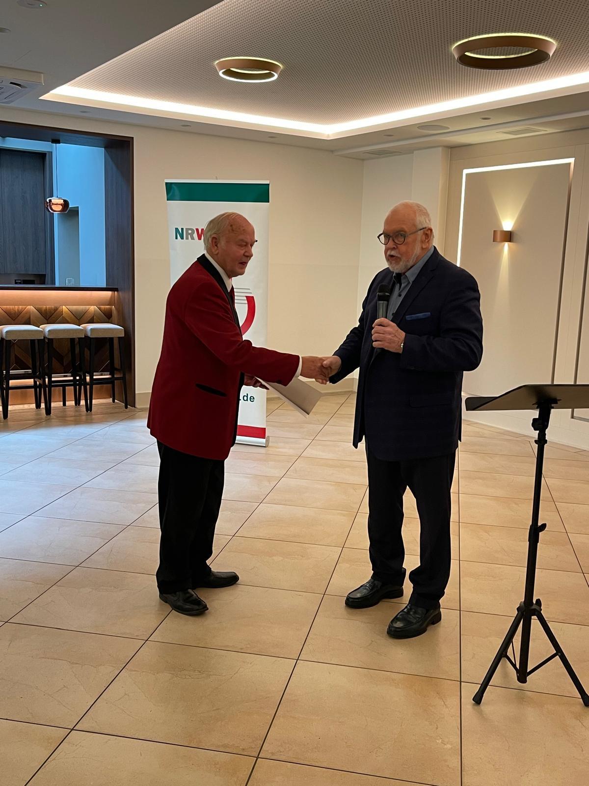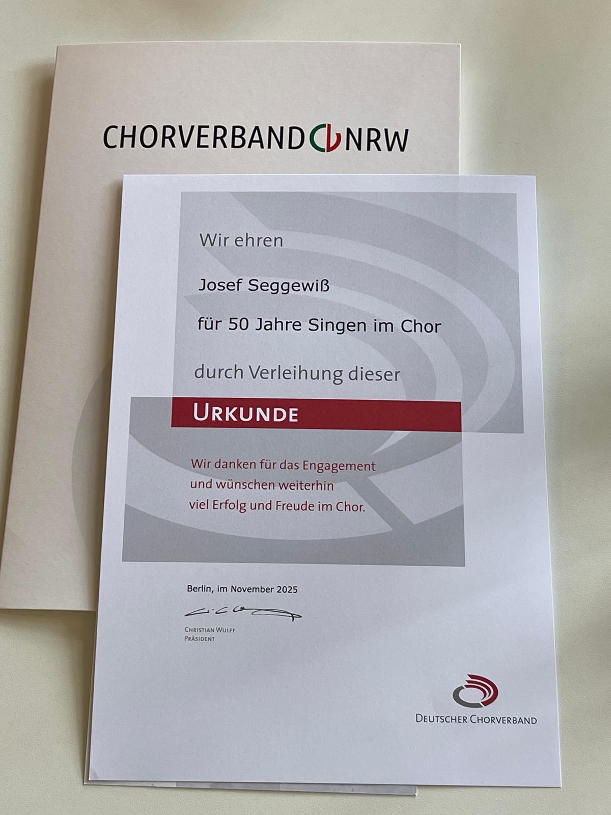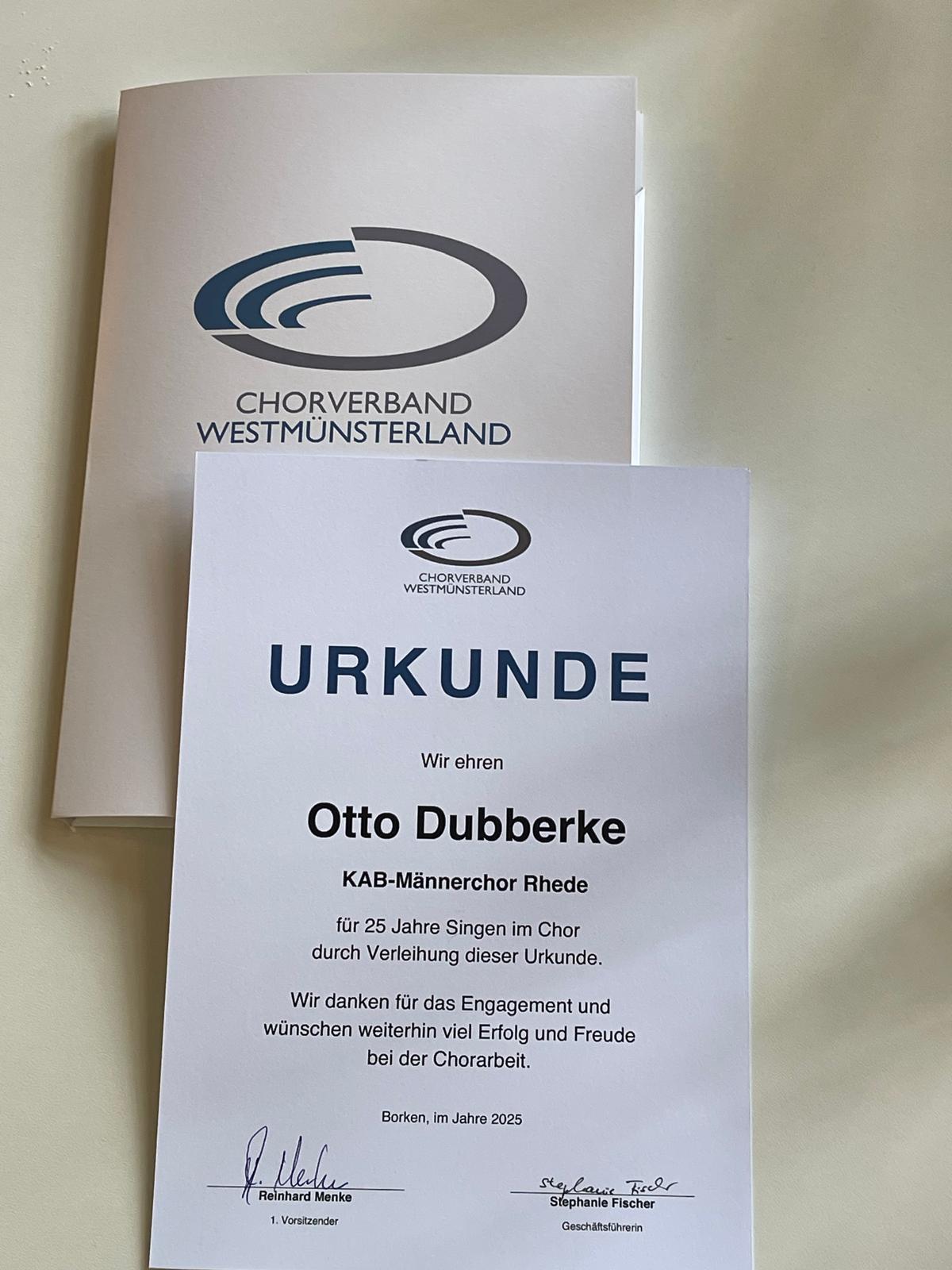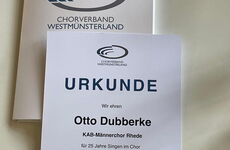 Otto Dubberke (25 Jahre) und Josef Seggewiß (50 Jahre) waren leider aus gesundheitlichen Gründen nicht in der Lage, an der Ehrung teilzunehmen. Für sie durfte ich die Urkunden und Nadeln stellvertretend aus der Hand des stellvertretenden Bürgermeisters entgegegennehmen.
