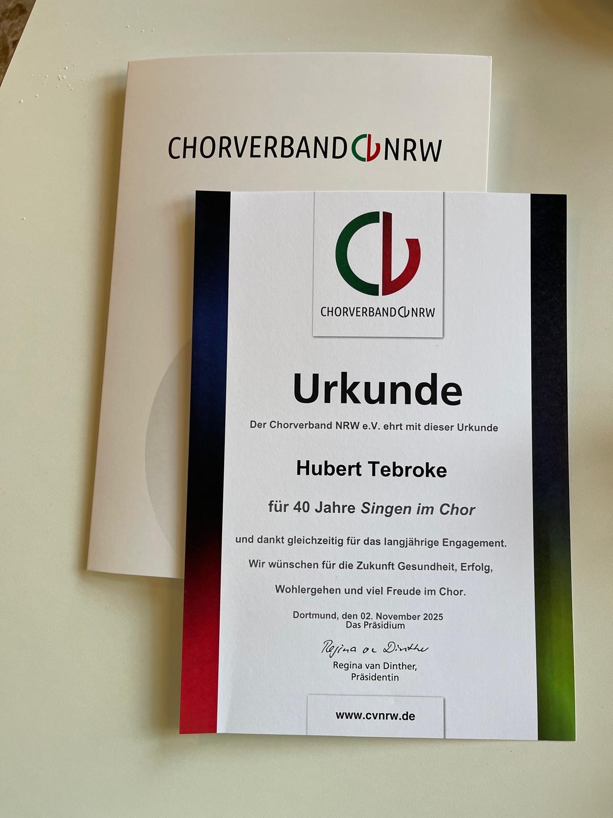 Jubilarehrung des Chorverbandes am 2. November 25 im Hotel Fliederbusch Borken