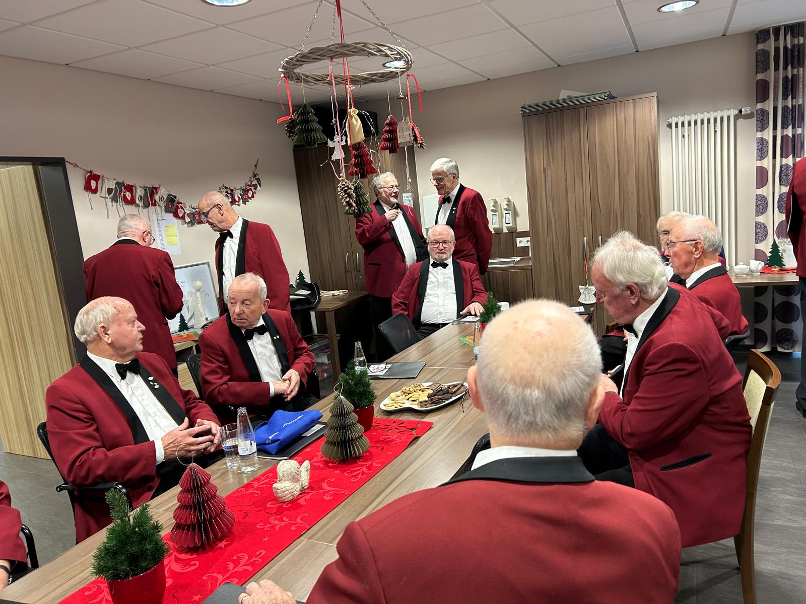 Freitags ging´s zum Seniorenheim Azurit. Der Raum zum Einsingen ist immer schön dekoriert, Kaffee, Plätzchen, Softgetränke stehen bereit. 20 Minuten reichten diesmal für die Vorbereitung. Beim Betreten des „Restaurants“, in dem wir immer singen, wurden wir mit Applaus begrüßt. Monika moderierte wieder freundlich und kompetent, führte kurz in jedes Lied ein. Wir starteten mit echten Adventsliedern, die von Erwartung und Hoffnung erzählen: „Macht hoch die Tür“. „Hoch tut euch auf“, „Haltet in den dunklen Tagen“, „Ist es noch weit nach Bethlehem“, „Maria durch ein´n Dornwald ging“. Eine Viertelstunde war dann Pause für Bewohner und Sänger mit einem Getränk. Danach wurde es weihnachtlicher, viele Lieder konnten die Hausbewohner mitsingen, einige Chorsätze trugen wir bei: „Weihnachtsglocken“, „Ein Stern stand am Himmel“, „O du Fröhliche“, „Stille Nacht“, das „Trommlerlied“. Ein herzliches Dankeschön, viele liebe Weihnachtswünsche, freundliche Grüße zu bekannten Bewohnern, „Ja, natürlich kommen wir nächstes Jahr wieder“. Im Pausenraum noch kurze Verabredungen für den Auftritt nächste Woche.