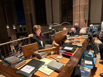 Wie jedes Jahr durften wir den Gottesdienst zur Eröffnung des Winterprogramms der KAB Rhede musikalisch mitgestalten. Am Sonntag früh um 8 Uhr Singen war für manchen ganz schön hart; einige der älteren Sänger scheuten zudem die sehr enge Treppe zur Orgelempore in der Gudula-Kirche. Dennoch waren pünktlich um 7 Uhr 28 Männer zum Einsingen erschienen. Unter ihnen auch Karsten, der an diesem Tag Geburtstag hatte. So begann dann auch das Einsingen mit einem Ständchen für Karsten und einem für Walter, der zwei Tage vorher feiern konnte.