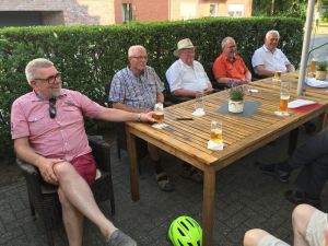 Johannes kam auf die tolle Idee: Seit Mitte März konnten wir nicht miteinander singen, uns nicht mal sehen, Corona hatte uns fest im Griff. Im Juni wurden die Vorschriften ein wenig gelockert, man durfte im Biergarten mit bis zu 10 Personen an einem Tisch sitzen, mit Einschränkungen zwar, aber immerhin. Da kam Johannes mit dem Vorschlag, einen wöchentlichen Stammtisch einzurichten, er rannte offene Türen ein. Zunächst schafften es nur 6 Personen, aber im Laufe der Wochen wurden es deutlich mehr. Bis in den Spätherbst hinein trafen sich jede Woche einige Sänger im Biergarten am Vereinshaus.