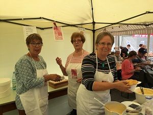 Traditionsgemäß backt die KAB Rhede zur Kirmes Waffeln. Freitag, Samstag, Sonntag übernehmen andere Gruppen die Arbeit, am Montag ist der Männerchor an der Reihe. Zwei Schichten zu je drei Stunden sind zu besetzen mit einer durchaus ungewohnten Aufgabe, zumindest für viele Männer. Deswegen sind sie auch froh, wenn ihre Frauen sich an der Arbeit beteiligen. Britta und Herbert Veith übernahmen die erste Schicht zusammen mit Hildegard und Werner Kobensen und Elisabeth und Ludger Nienhaus. Im Keller des Vereinshauses wird der Teig hergestellt, nach genau vorgeschriebenem Rezept, damit die Qualität auch immer gleich ist. Drei Damen backen und verkaufen die gezuckerten Waffeln, zwei Männer kochen den Kaffee und spülen das Geschirr. Alle „Arbeiter“ waren der Meinung, die Nachfrage sei doch sehr gut gewesen, sie hatten kaum Zeit zum Ausruhen. Nach der Schicht konnten sie sich dann ein wenig setzen und bei einer Waffel und einer Tasse Kaffee mit Bekannten plaudern, natürlich über Angelegenheiten des Chores. Denn die Ablösung war schon an der Arbeit, Roswitha und Johannes Gierkink, Annegret und Ludger Grunden, Elisabeth und Adalbert Schilling-Frenk. Wie viel sie umgesetzt hatten, wusste keiner so genau, aber einige Euro kommen schon der Chorkasse zugute.