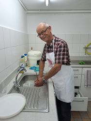 Seit vielen Jahren bietet die KAB während der Kirmestage den Besuchern leckere Waffeln und Kaffee an, und immer übernimmt der Männerchor einen Teil der Dienstzeit. Am Samstag, Sonntag und Montag waren unsere Sänger mit im Einsatz. Meist standen zwei oder drei Frauen unmittelbar im Verkaufsstand, bedienten die Waffeleisen, verkauften die Waffeln. Eine Person hatte ihren Platz in der Garage, verkaufte Kaffee, spülte das benutzte Geschirr, räumte die Tische und Bänke ab; einer arbeitete im Keller des Vereinshauses, kochte den Kaffee, rührte den Waffelteig an. Einer war immer unterwegs, holte Teig und Kaffee aus dem Keller, brachte alles zum Stand und unterstützte, wo Hilfe gebraucht wurde. Allen, die diese Aktion so erfolgreich durchgeführt haben, sagen wir herzlichen Dank, ganz besonders dem Adalbert, der einen Teil seines 77. Geburtstages in der Waffelbäckerei verbrachte.