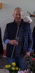 Geburtstag hatte Karl Bußkamp schon am 18. Dezember, wir hatten ihm auch schon alle in der WhatsApp-Gruppe gratuiert, sogar gesungen hatten wir schon für ihn am 21. Dezember beim Einsingen in Haus Hildegard. Aber bei der letzten Chorprobe des Jahres am 29. Dezember kam Markus noch mit einer Überraschung: Er gratulierte Karl noch einmal zu diesem ganz besonderen Geburtstag mit einem stärkenden Trunk und einem Blumenstrauß.