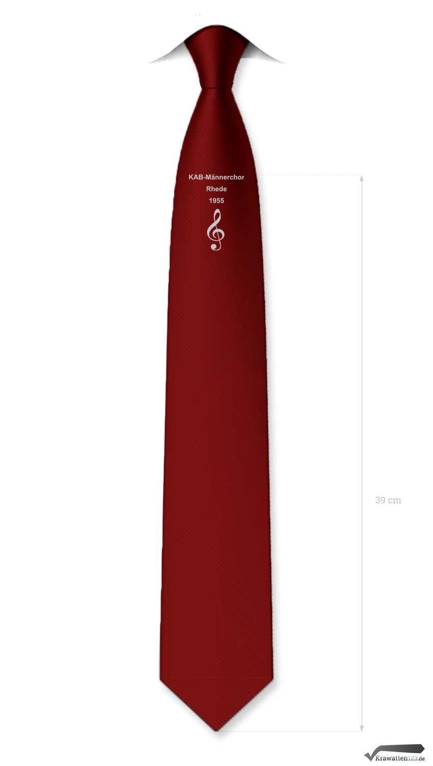 Die Kleiderordnung für heiße Tage ist verändert worden: Die Versammlung entschied sich für eine rote Krawatte mit dem Aufdruck „KAB Männerchor Rhede“ und einem Violinschlüssel.