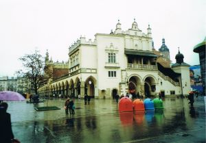 An der Kathedrale vorbei ging es dann zum Königsschloss, dem Herzstück des Wawel. Schon 11oo wurde hier eine Königsresidenz gebaut, gotisch, später im Renaissance-Stil umgebaut. Der Innenhof ist von dreistöckigen Arkadengängen umgeben, die Fassade mit Fresken reich geschmückt. Nach dem Mittagessen konnte jeder auf Erkundung und Besichtigung gehen. Die orientalisch anmutenden holzgeschnitzten Krambuden in den Tuchhallen verleiteten so manche Damen zum Kauf von Bernsteinschmuck oder rustikaler Keramik. Es herrschte eine wohlwollende Wärme und heimelige Atmosphäre, die das Novemberwetter vergessen ließen.